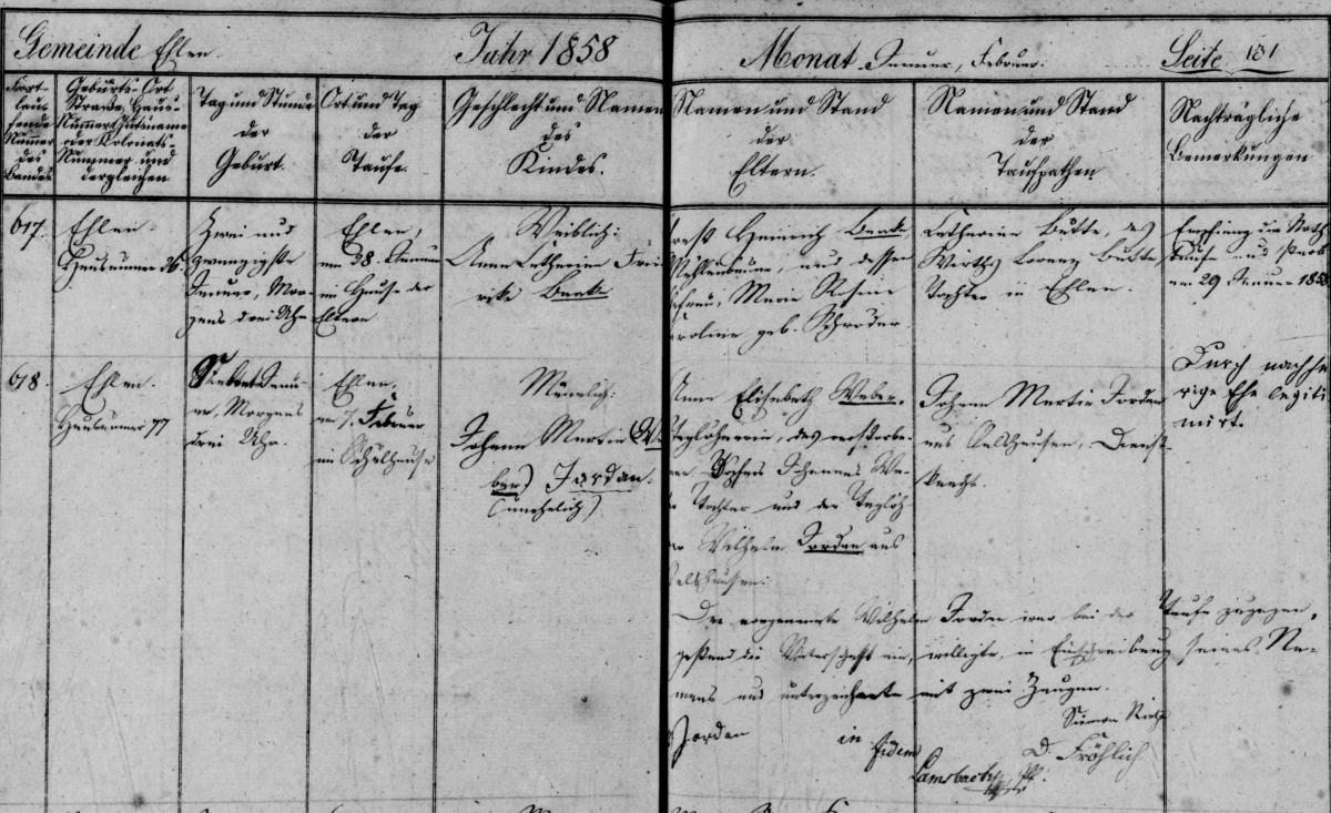 Die Taufeinträge im Ehlener Kirchenbuch (Taufen 1830-1878) zu den beiden Söhnen, den Stammvätern der beiden Jordan-Linien in Ehlen!