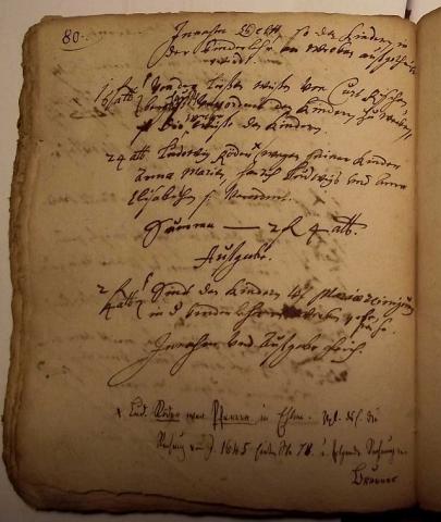 "Innnahm Geld so den Kindern im der Kinderlehr ausgetheilt wirdt. 1 Taler 6 alb. von der Lysen Wiese von Curtt Rischenbergk sel. verordnet, den Kindern in der Kindelehre zu Wecken, gibt itzund Curtt Jungermann an der Weckewießen , bleibt die Wiese vor sich den Kindern. "