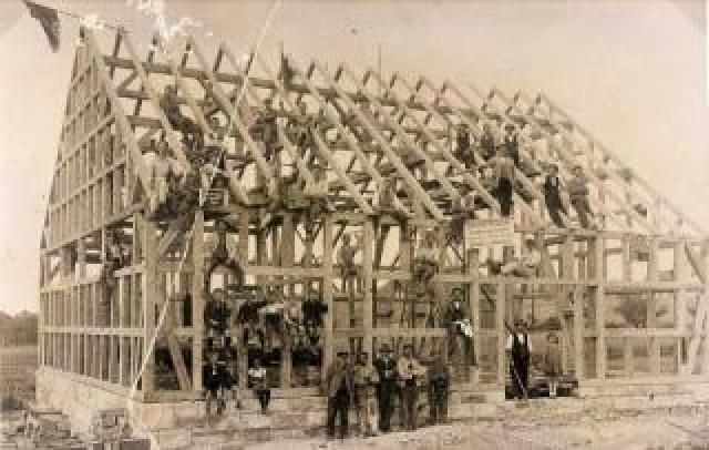 Turnhalle EhlenLFreitagKBiedebachFBüchlingMWinning1928 800Handwerker beim Turnhallenbau Ehlen